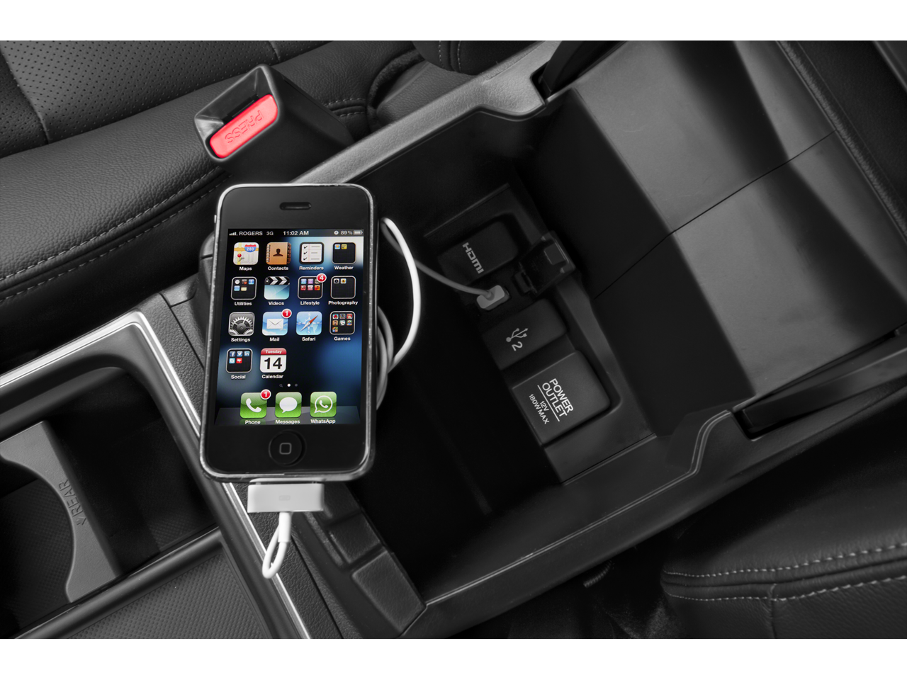 - Full Floor Console w/Covered Storage, Mini Overhead Console w/Storage, Conversation Mirror and 2 12V DC Power Outlets