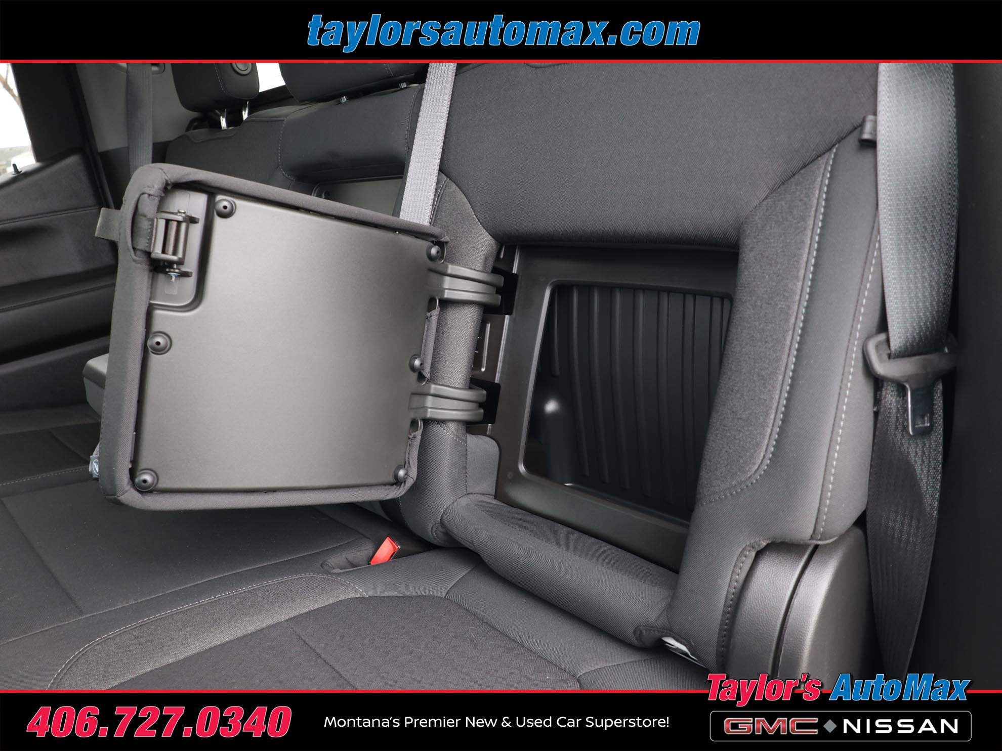 - Seat, Cloth Rear with Storage Package 60/40 folding bench for Crew Cab models, includes seatback storage on left and right side, center fold out armrest with 2 cupholders, (includes child seat top tether anchor)