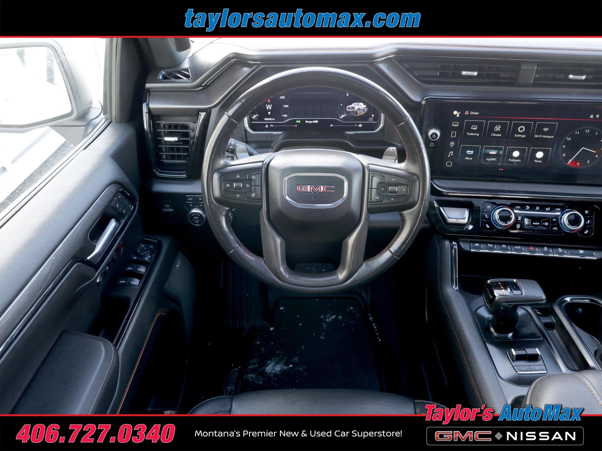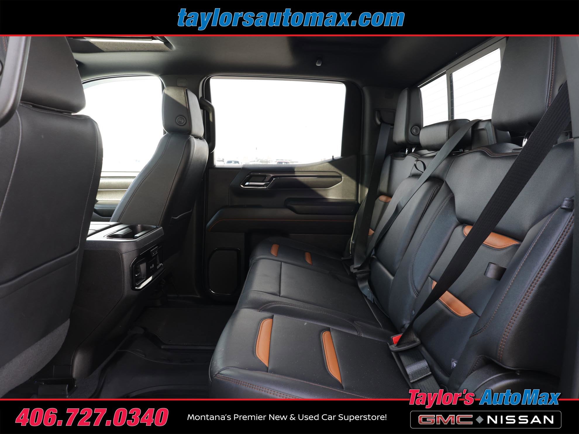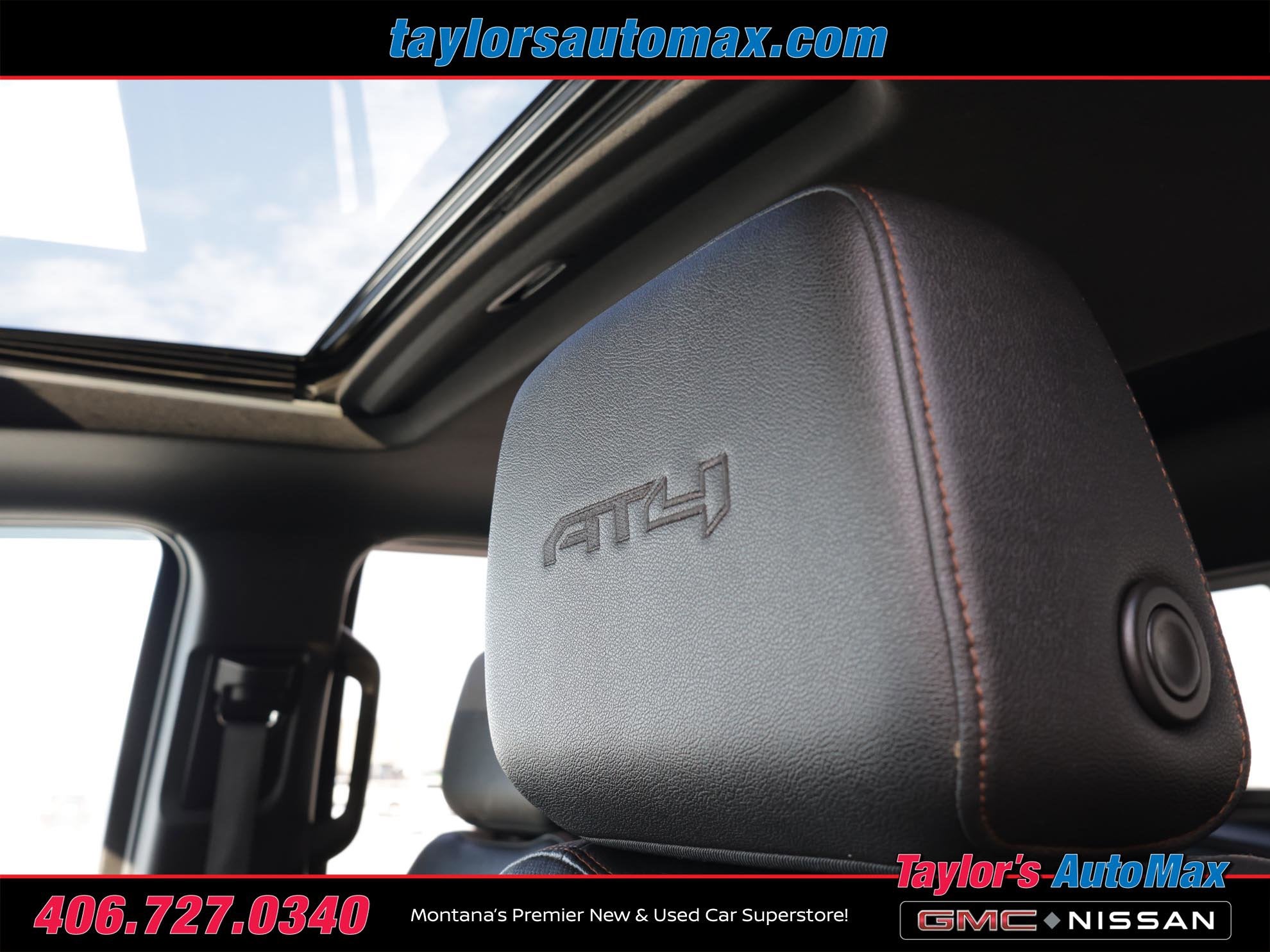 LEATHER INTERIOR, Sierra 1500 AT4, 4D Crew Cab, EcoTec3 6.2L V8, 10-Speed Automatic, 4WD, Summit White, Jet Black w/Kalahari Accents w/Perforated Front Leather Seat Trim, 120-Volt Bed Mounted Power Outlet, 120-Volt Instrument Panel Power Outlet, 2 Charge/Data USB Ports Inside Center Console, 2 Type-C Charge-Only Rear USB Ports, 2 USB Ports, 220 Amp Alternator, Adaptive Cruise Control, AT4 Preferred Package, AT4 Premium Package, Auto-Locking Rear Differential, Bed View Camera, Black Chrome Header & Grille Insert Bars, Color-Keyed Carpeting Floor Covering, Compass, Deep-Tinted Glass, Electric Rear-Window Defogger, Electrical Steering Column Lock, Floor-Mounted Center Console, Front Prem Floor Liners w/Removable Carpet Insert, Front Rainsensing Wipers, GMC Connected Access Capable, HD Rear Vision Camera, HD Surround Vision, Heated 2nd Row Outboard Seats, Heated Driver & Front Outboard Passenger Seating, Heated Steering Wheel, Heavy-Duty Air Filter, Hill Descent Control, Hitch Guidance, Hitch Guidance w/Hitch View, In-Vehicle Trailering App, Integrated Trailer Brake Controller, Keyless Open & Start, LED Cargo Area Lighting, Multicolor 15 Diagonal Head-Up Display, Navigation System, Off-Road High Clearance Step (LPO), OnStar & GMC Connected Services Capable, Perimeter Lighting, Power Door Locks, Power Front Passenger Windows w/Express Up/Down, Power Front Windows w/Driver Express Up/Down, Power Rake & Telescoping Steering Column, Power Rear Windows w/Express Down, Power Sliding Rear Window w/Rear Defogger, Power Sunroof, Preferred Equipment Group 4SB, Premium Bose 7-Speaker Sound System, Push Button Start, Rear Camera Mirror, Rear Cross Traffic Braking, Rear Pedestrian Detection, Rear Prem Floor Liners w/Removable Carpet Insert, Rear Wheelhouse Liners, Red Recovery Hooks, Remote Vehicle Starter System, Sierra Safety Plus Package, SiriusXM w/360L, Spray-On Pickup Bed Liner w/AT4 Logo, Steering Wheel Audio Controls, Technology Package, Theft Deterrent System (Unauthorized Entry), Trailer Camera Provisions, Trailer Side Blind Zone Alert, Trailering Package, Ultrasonic Front & Rear Park Assist, Universal Home Remote, Ventilated Driver & Front Passenger Seats, Wi-Fi Hotspot Capable, Wireless Charging, Wireless Phone Projection. 2022 GMC Sierra 1500 AT4 Summit White 4WD 10-Speed Automatic EcoTec3 6.2L V8
