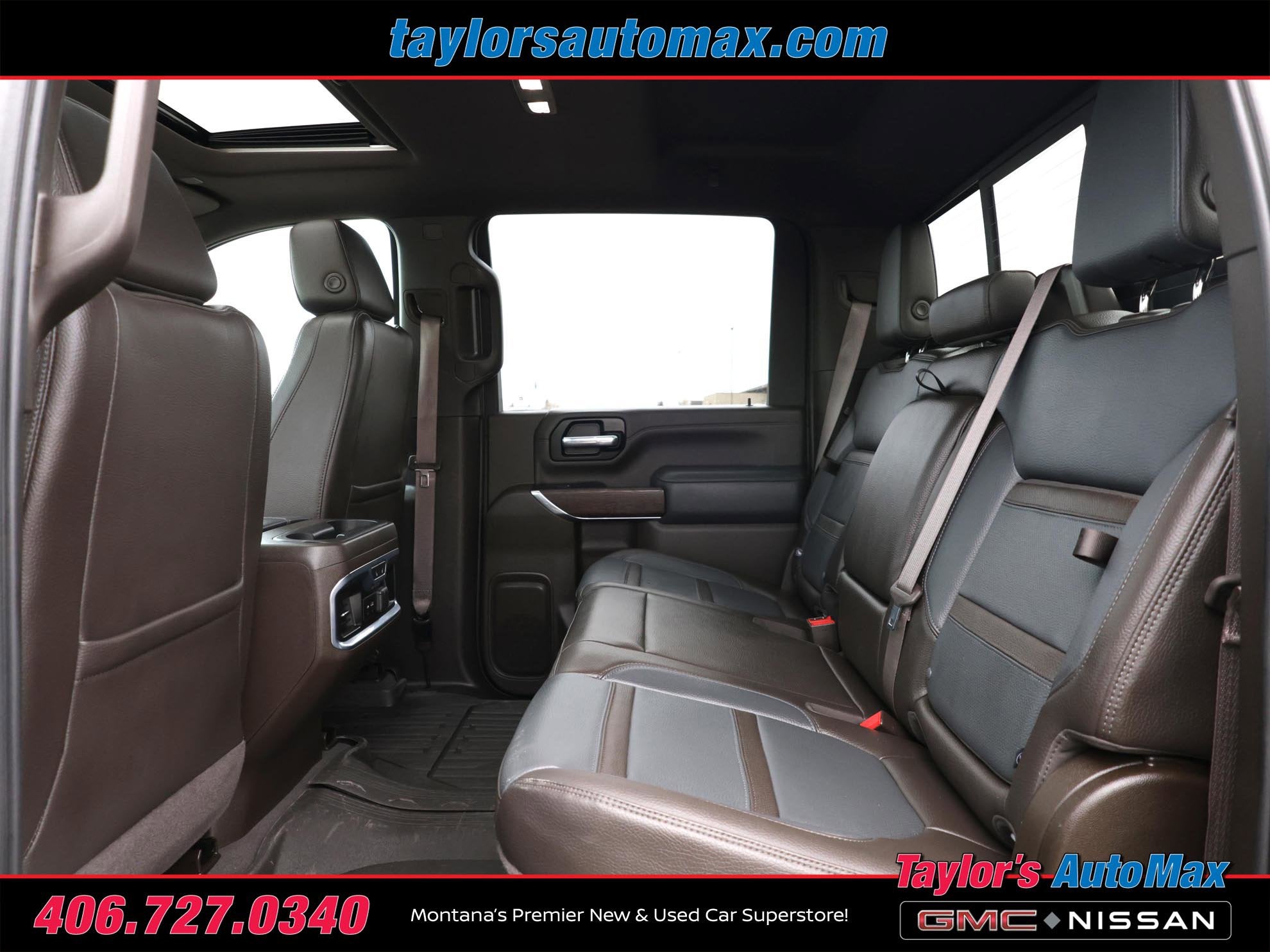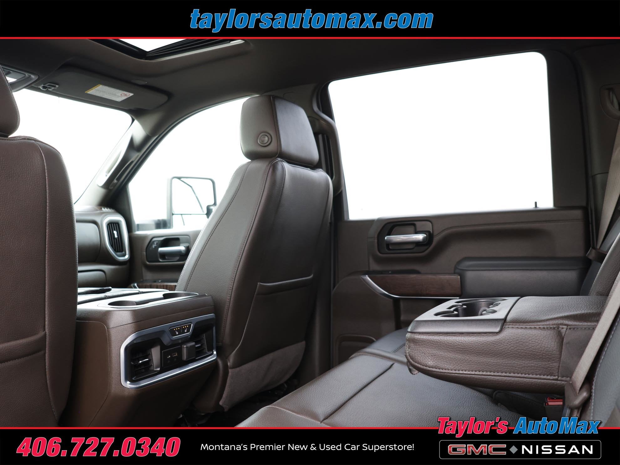 LOCAL TRADE IN ONE OWNER, LEATHER INTERIOR, Sierra 2500HD Denali, 4D Crew Cab, Duramax 6.6L V8 Turbodiesel, 10-Speed Automatic, 4WD, Quicksilver Metallic, Dark Walnut/Dark Ash Gray w/Forge Perforated Leather-Appointed Front Seat Trim, 12-Volt Rear Auxiliary Power Outlet, 120-Volt Bed Mounted Power Outlet, 120-Volt Instrument Panel Power Outlet, 2 USB Ports, 2 USB Ports (1st Row), 2-Speed Active Transfer Case, 2nd Row Dual USB Charge-Only Ports, 6 Rectangular Chromed Tubular Assist Steps, Automatic Emergency Braking, Bed View Camera w/2 Trailer Camera Provisions, Cargo Convenience Package, Compass Located In Instrument Cluster, Console-Mounted Safe (LPO), Deep-Tinted Glass, Denali Ultimate Package, Driver Alert Package I, Driver Alert Package II, Electric Rear-Window Defogger, Electrical Lock Control Steering Column, Floor-Mounted Center Console, Following Distance Indicator, Forward Collision Alert, Front Chrome Recovery Hooks, GMC Connected Access Capable, Gooseneck/5th Wheel Prep Package, HD Surround Vision w/2 Trailer View Camera Provisions, Heated & Ventilated Front Bucket Seats, Heated Driver & Front Outboard Passenger Seats, Hill Descent Control, Inside Rearview Auto-Dimming Rear Camera Mirror, Integrated Trailer Brake Controller, IntelliBeam Automatic High Beam On/Off, Keyless Open & Start, Lane Change Alert w/Side Blind Zone Alert, Lane Departure Warning System, LED Cargo Area Lighting, LED Smoked Amber Roof Marker Lamps, Manual Tilt-Wheel/Telescoping Steering Column, Multicolor 15 Diagonal Head-Up Display, Navigation System, OnStar & GMC Connected Services Capable, Polished Exhaust Tip, Power Door Locks, Power Front Passenger Windows w/Express Up/Down, Power Rear Windows w/Express Down, Power Sliding Rear Window w/Defogger, Power Sunroof, Power Windows w/Driver Express Up/Down, Preferred Equipment Group 5SA, Rear Cross Traffic Alert, Rear Underseat Storage (LPO), Rear Wheelhouse Liners, Remote Vehicle Starter System, Safety Alert Seat, Signature Denali Grille, Spray-On Pickup Box Bed Liner w/Denali Logo, Steering Wheel Audio Controls, Technology Package, Unauthorized Entry Theft-Deterrent System, Universal Home Remote, Wi-Fi Hotspot Capable, Wireless Charging, Wireless Phone Projection, X31 Off-Road Package. 2022 GMC Sierra 2500HD Denali Quicksilver Metallic 4WD 10-Speed Automatic Duramax 6.6L V8 Turbodiesel