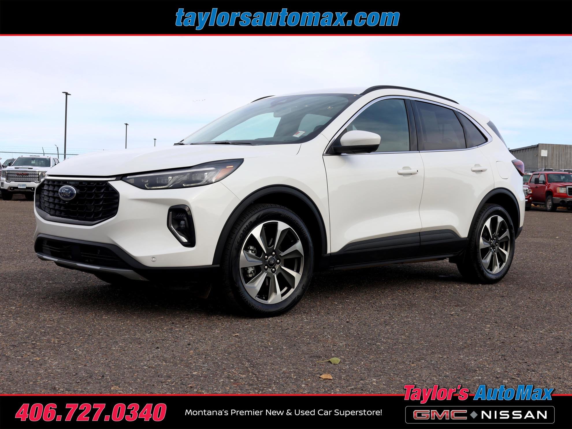 LEATHER INTERIOR, Escape Hybrid Platinum, 4D Sport Utility, 2.5L iVCT, eCVT, AWD, Star White Metallic Tri-Coat, Air Conditioning, Automatic temperature control, Electronic Fuel Door Release, Equipment Group 600A, Front dual zone A/C, Memory seat, Navigation system: Connected Navigation, Neutral Towing Capability, Pedestrian Alert Sounder, Power driver seat, Power steering, Power windows, Rear window defroster, Remote keyless entry, Steering wheel mounted audio controls. 2023 Ford Escape Hybrid Platinum Star White Metallic Tri-Coat AWD eCVT 2.5L iVCT