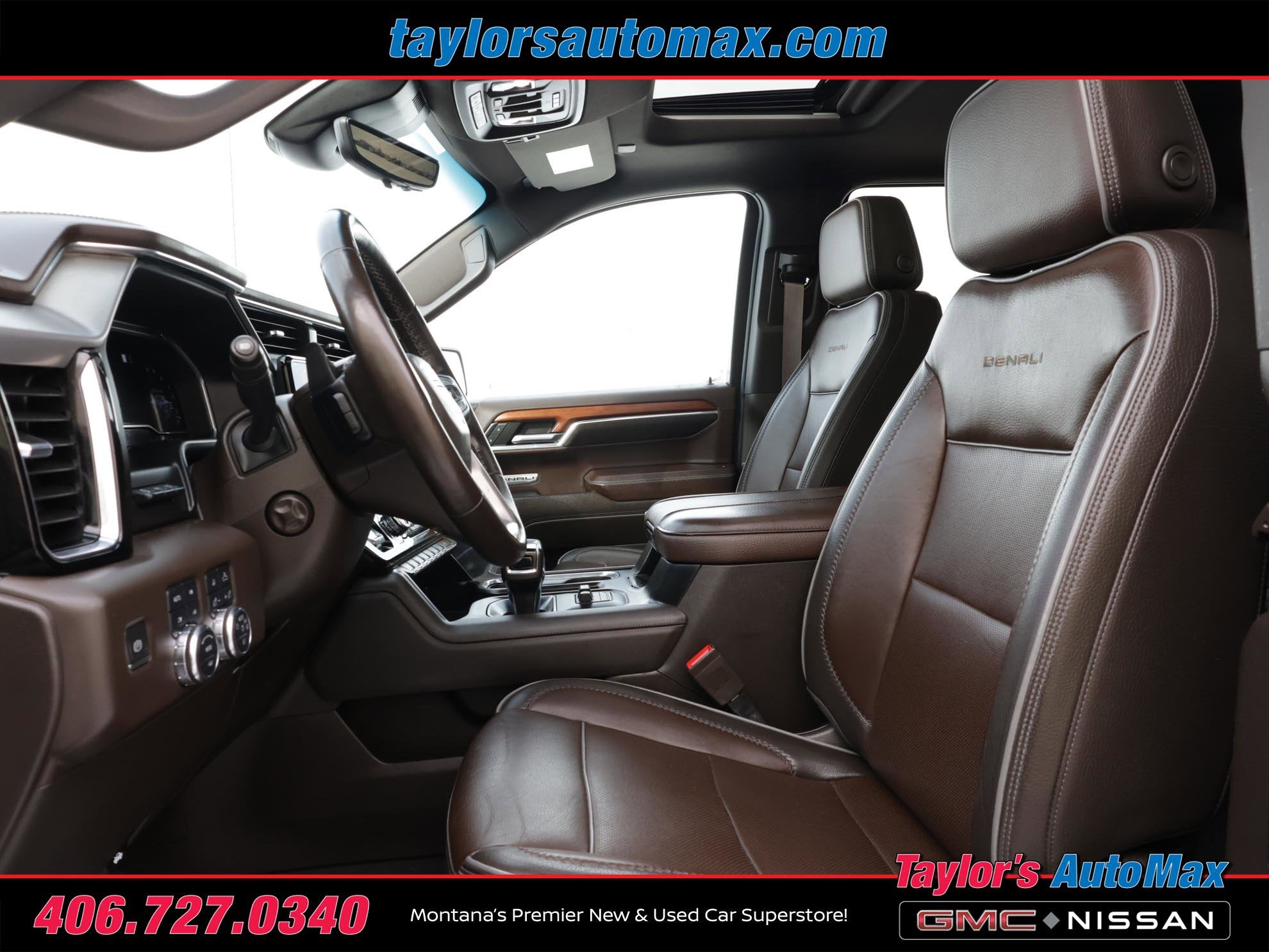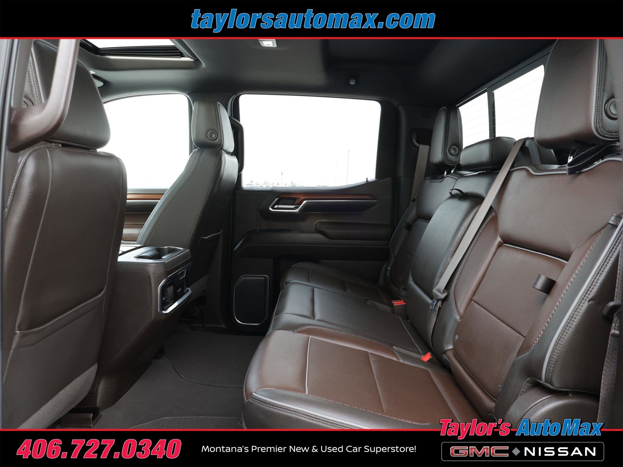 LOCAL TRADE IN ONE OWNER, LEATHER INTERIOR, Sierra 1500 Denali, 4D Crew Cab, EcoTec3 5.3L V8, 10-Speed Automatic, 4WD, Pacific Blue Metallic, Atmosphere/Brownstone Leather, 120-Volt Bed Mounted Power Outlet, 120-Volt Instrument Panel Power Outlet, 170 Amp Alternator, 2 Charge/Data USB Ports Inside Center Console, 2 Type-C Charge-Only Rear USB Ports, 2 USB Ports, Adaptive Cruise Control, Auto-Locking Rear Differential, Auxiliary External Transmission Oil Cooler, Bed View Camera, Chrome Header w/Signature Denali Chrome Grille, Chrome Recovery Hooks, Chrome Wheel To Wheel Assist Steps, Color-Keyed Carpeting Floor Covering, Compass, Deep-Tinted Glass, Denali Reserve Package, Electric Rear-Window Defogger, Electrical Steering Column Lock, Floor-Mounted Center Console, Front Rainsensing Wipers, GMC Connected Access Capable, GMC MultiPro Power Steps, HD Surround Vision, Heated 2nd Row Outboard Seats, Heated Driver & Front Outboard Passenger Seating, Heavy-Duty Air Filter, Hill Descent Control, Hitch Guidance, Hitch Guidance w/Hitch View, In-Vehicle Trailering App, Integrated Trailer Brake Controller, Keyless Open & Start, LED Cargo Area Lighting, Multicolor 15 Diagonal Head-Up Display, Navigation System, OnStar & GMC Connected Services Capable, Perimeter Lighting, Power Door Locks, Power Front Passenger Windows w/Express Up/Down, Power Front Windows w/Driver Express Up/Down, Power Rake & Telescoping Steering Column, Power Rear Windows w/Express Down, Power Sliding Rear Window w/Rear Defogger, Power Sunroof, Preferred Equipment Group 5SA, Premium Bose 7-Speaker Sound System, Push Button Start, Rear Camera Mirror, Rear Cross Traffic Braking, Rear Pedestrian Detection, Rear Wheelhouse Liners, Remote Vehicle Starter System, SiriusXM w/360L, Spray-On Pickup Bed Liner w/Denali Logo, Steering Wheel Audio Controls, Technology Package, Theft Deterrent System (Unauthorized Entry), Trailer Camera Provisions, Trailer Side Blind Zone Alert, Trailering Package, Ultrasonic Front & Rear Park Assist, Universal Home Remote, Ventilated Driver & Front Passenger Seats, Wheel Locks (Set of 4) (LPO), Wheels: 22 x 9 Painted Aluminum, Wi-Fi Hotspot Capable, Wireless Charging, Wireless Phone Projection. 2023 GMC Sierra 1500 Denali Pacific Blue Metallic 4WD 10-Speed Automatic EcoTec3 5.3L V8
