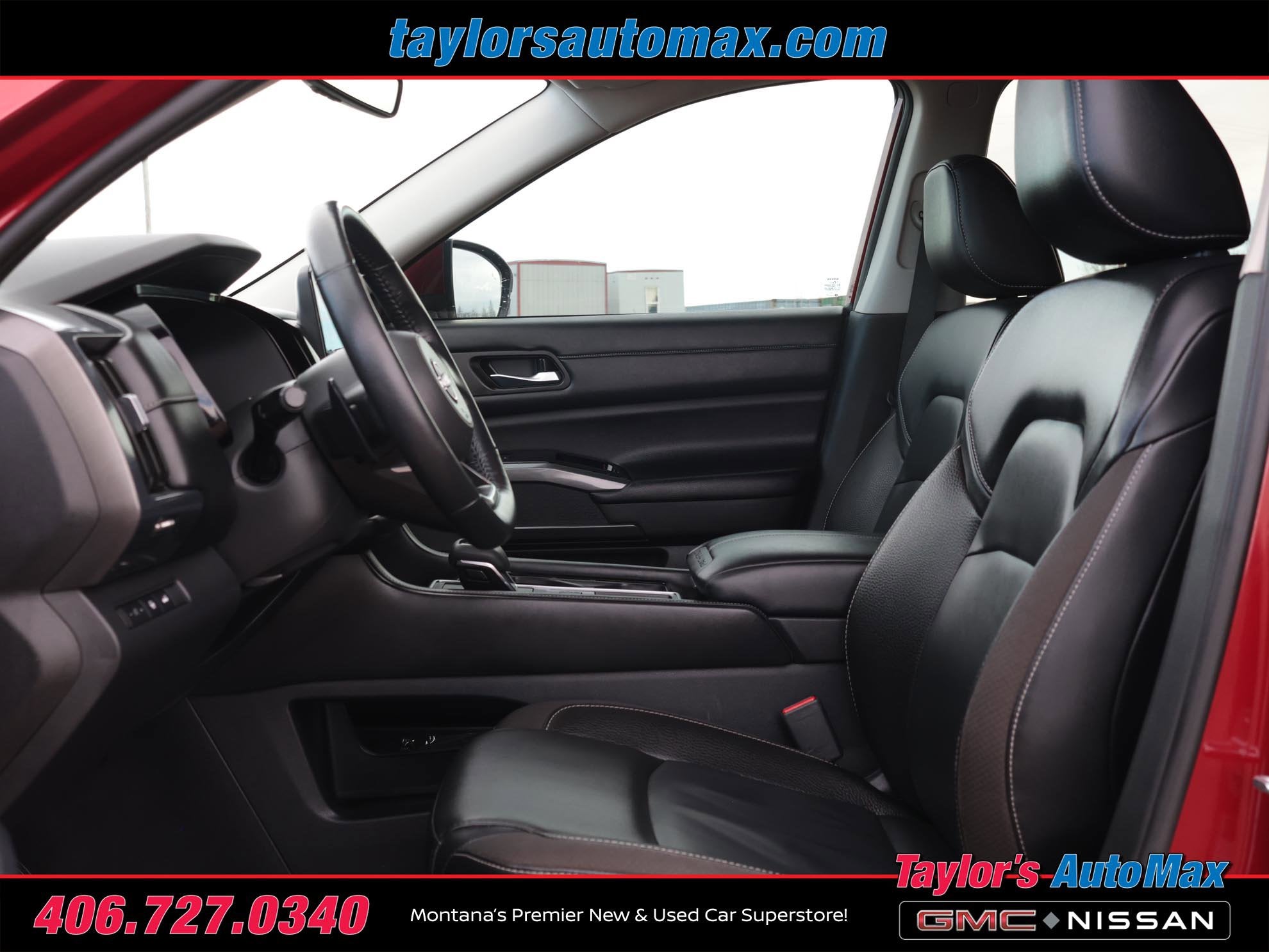 LOCAL TRADE IN, LEATHER INTERIOR, Pathfinder SL, 4D Sport Utility, V6, 9-Speed Automatic, FWD, Scarlet Ember Tintcoat, Charcoal Leather, Air Conditioning, Automatic temperature control, Cross Bars, Four wheel independent suspension, Front dual zone A/C, Navigation system: NissanConnect Navigation, Power driver seat, Power steering, Power windows, Rear air conditioning, Rear window defroster, Remote keyless entry, Speed-sensing steering, Steering wheel mounted audio controls, Traction control. 2023 Nissan Pathfinder SL Scarlet Ember Tintcoat FWD 9-Speed Automatic V6