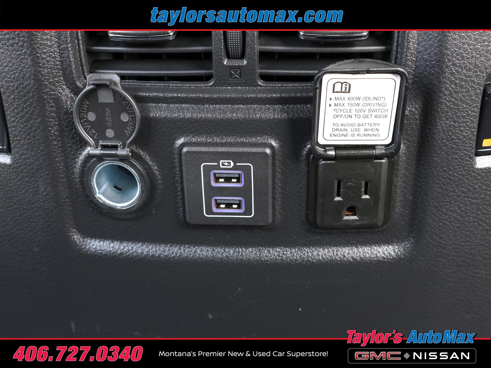 - 3 12V DC Power Outlets and 1 Interior 120V AC Power Outlet