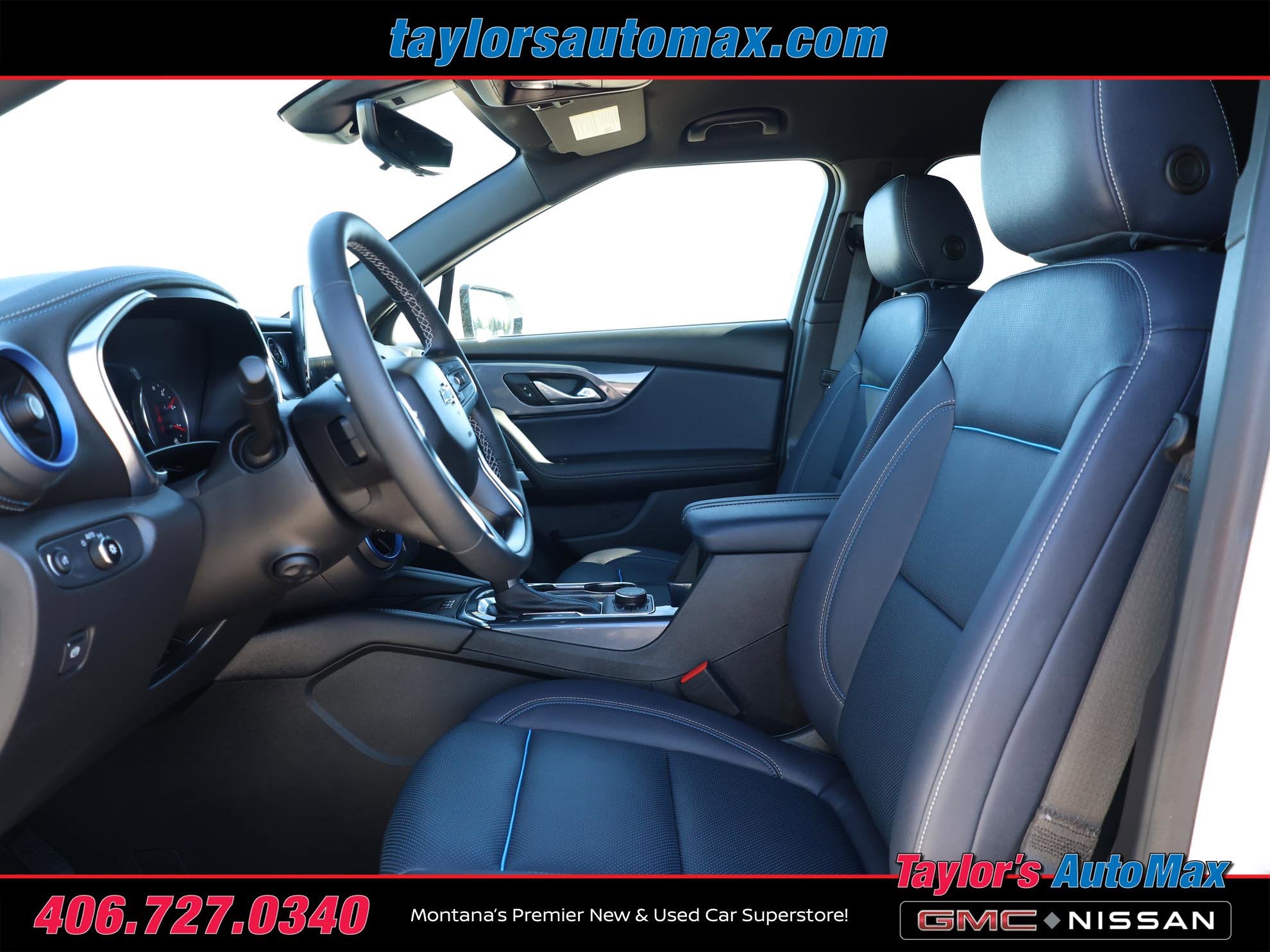 LOCAL TRADE IN ONE OWNER, LEATHER INTERIOR, Blazer RS, 4D Sport Utility, 3.6L V6 SIDI, 9-Speed Automatic with Overdrive, AWD, Iridescent Pearl Tricoat, Jet Black/Nightshift Blue Leather, 1st & 2nd Row All-Weather Floor Liners (LPO), 4-Wheel Disc Brakes, 6-Way Power Front Passenger Seat Adjuster, 8 Speakers, 8-Way Power Driver Seat Adjuster, Adaptive Cruise Control, Air Conditioning, Automatic temperature control, Bose Premium 8-Speaker Audio System Feature, Driver Confidence II Package, Enhanced Automatic Emergency Braking, Enhanced Convenience Package, Floor Liner Package (LPO), HD Surround Vision, Heated Rear Outboard Seating Positions, Heated steering wheel, Integrated Cargo Liner (LPO), Memory Settings For Driver Seat & Exterior Mirrors, Navigation System, Power Liftgate, Power Tilt & Telescoping Steering Column, Preferred Equipment Group 1RS, Rear Camera Mirror, Rear Camera Mirror Washer, Safety Alert Seat, Ventilated Driver & Front Passenger Seats. 2025 Chevrolet Blazer RS Iridescent Pearl Tricoat AWD 9-Speed Automatic with Overdrive 3.6L V6 SIDI